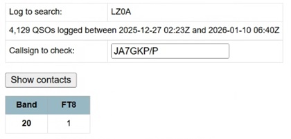 2024年03月06日 追加 なんとかTY5C(Benin)がWkdです! なかなか見えるタイミングに合わないなあと思っていましたが、今朝布団の 中でPSKRを見ると、20mの信号がだんだんとJAに近づいている様子。 30分もしたでしょうか再度見てみるとJAでも見えているみたいです。 すぐ起き上がりワッチするとしっかり見えていました! 良いときは3Slotくらいで見えているので早速コールを開始します。 多くの方は1000以上のDFで呼んでいますが、見たWEBサイトによれば 全てMSHVでオンエアするとの事だったので空いていた下の方でコール すると、すぐコールバックがあり無事RR73も貰えました。 Newではありませんでしたが、嬉しいQSOでした。 因みに今(17:30)は20mのFT4で盛んにサービスしているようですが私 には見えません! 雨で寒いので今日は田んぼにも畑にも出ません。ベランダLWで我慢 です。 まだ滞在するようなので、そのうちまたチャンスがあると思います。 ![]() 2024年02月21日 追加 Pedition局がいっぱい! Juan Fernandez Islands/Robinson Crusoe Islands からのCB0ZA,CB0ZW CB0ZEWは、その後なぜかよく入感するようになり各局とも2BANDずつ Wkdできました。 そして今日はNewではないですが, TX8C、FW8C、PZ5RA、5H4AYLなど とQSO出来ました。 連日、8R7X、V26K、TX5Oなどの未QSOのEntityからの信号が見えて いるのでなんとかWkdしたいものです。 ベランダの4.2m釣り竿LWでもそこそこ楽しめるものです。 2024年02月16日 追加 やっと CB0ZA(Juan Fernandez Islands/Robinson Crusoe Islands) が出来ました! 今週はずっと狙っては見えずじまいで悔しい思いをしていたCB0ZA、 CB0ZEW、CB0ZWでしたが、CBZAをやっとWkd出来ました。 連日、PSKRやらLive Streamなどと睨めっこしながら狙っていましたが、 呼ぶ局は沢山見えてもご本音は一日に4,5回一瞬だけ見えては消え てしまうような状態でした。 連日、全てのBANDで繰り返されるこの状況に「これはダメかも・・・」 と思い始めていましたが、先ほど18MHzに出始めたようなのでワッチ する周波数を変えてみると・・・やはり見えません! 呼ぶ局は画面ほぼいっぱいに広がっていますが見えません。 それでも少し見ていると突然に、本当に突然に-17dBで見えました! それも2SLOTで見えています。またすぐ見えなくなるのかなと思いなが らもコールすると大丈夫そうです。今回は続けて見えています。 呼び続ける事3分くらいでしょうか。遂に紫帯に赤文字が表示されまし た。 「やったー!」あとは「RR73」が返ればOKです。送られてきたレポート は−1dBなので、これはいいぞと祈るような気持ちで待つこと15秒 来ました! RR73が返ってきました。 すぐにLive Streamで確認するとコールサインがしっかり載っています! よくぞこのパイルアップの中からベランダの4.2m釣り竿アンテナの ひょろひょろ電波を拾ってくれました! しかし、いくらPeditionといえどもチリですから、こんなに苦労するとは 全く思いませんでした。 こちらのアンテナがショボいのは言うまでもありませんが、電波が 兎に角、弱いです。 おそらくビームをW方面に向けたままで、アジア方面には向ける事が ないのじゃないかと推測しています。 どのBANDもどの時間帯もWとその延長線上にあるのかEUだけが OPENしているようです。 やっとCB0ZAと1QSOできただけなので他のBAND、そしてCB0ZEW, CB0ZWも狙ってみたいと思います。 ![]() 2024年02月07 追加 TJ9MDのカードが届きました! 昨年11月に行われたカメルーンへのPeditionのカードが届きました。 ただ、なぜか20mのRSTデータがFT8なのに599になっています。 まあ、AWARD申請の計画もないので再発行のリクエストはしないで おきます。 ![]() ![]() 20mのRSTがなぜか599? ![]() ![]() 2024年02月03日 追加 絶妙のタイミングで7O2WXとQSO なかなか見えなかった7O2WXが今朝は14MHzで見えている様子なので SWを入れて見ますが、やはり見えるのはコールするJAとWの局が2,3局 だけです。 ただ、その2,3局は全て順次にWkdとなっていきます。なかなか見えない けど見えればQSO出来ている感じ。 他に目ぼしい局も見えていないようなので「羨ましいなあ」などと思いなが らぼーっつと見続けること45分! ずーっと2〜5局が代わるがわる呼ん ではレポートをもらっています。 突然、-17で見えました! 即コールを開始すると一発でコールバックが あり、トントン拍子にRR73まで貰えました。この時はなぜかFHとMSHVが 混在しているような運用に見えたので、こちらはMSHVと判断し73も送って おきました。 後でLOG SEARCHを行うと無事にOKとなっていました。 昨年末の7O73Tに続きイエメンは2局目となりました。 それにしても下の画面を見えて分かる通り、なんというタイミングでQSO 出来たんでしょうか?! 相手が見えたのはレポート交換をしている1分間だけで、またすぐ見えなく なってしまっています。 こんなことは初めてです。 ただ、この15分後には割と安定して4SLOTくらいで入感していました。 ![]() 2024年01月26日 追加 カーボンロッドに直接通でを試してみた TX5Sは、その後28と14MHzで交信し4BANDでWkdとなりました。 高潮で計画より早めの